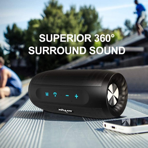 Der tragbare und wasserdichte Bluetooth-Lautsprecher. mit integriertem Mikrofon. von Zealot hat eine Musikleistung von 20W und bietet hervorragende 360° Soundqualität. Das perfekte an der ZEALOT Soundbank: es können mehrere Geräte miteinander verbunden werden! In de Appstores gibt es von ZEALOT eine App für die Soundbox. ist jedoch nocht zwingend. Die Soundbank ist zugleich eine Powerbank. welche als Ladegerät mit 4000 mAh Akku. benutzt werden kann.