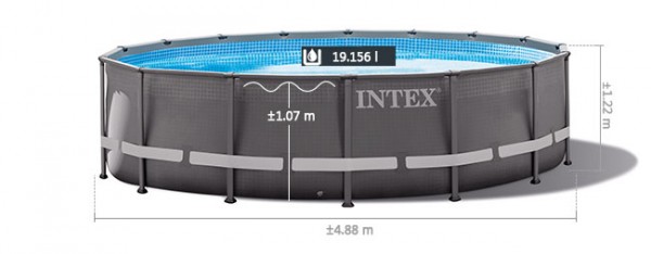 (ca. 60 Min Aufbauzeit) Technische Daten: Wasserkapazität: 19.156 Liter Durchmesser: 488 cm Höhe: 122 cm Sicherheit: TÜV / GS geprüft.