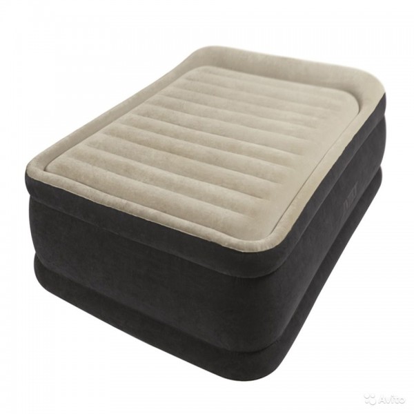 Intex 64404 Luftbett Premium Comfort Mid Rise Airbed Kit „Queen“. 230 V inklusive eingebauter Luftpumpe. 152 x 203 x 41 cm                             ist aufgrund der Hochleistungspumpe in nur 3 1/2 Minuten aufgepumpt! Qualitätsgeprüfte 0.56mm wasserdichte. beflockte Bettoberseite u. 0.53mm starke Seitenwände. mit 0.40mm Vinyl Boden Dura-Beam(TM) Konstruktion 152 x 203 x 41 cm lässt sich platzsparend zusammenfalten! inkl. Tragetasche bewährte INTEX Qualität