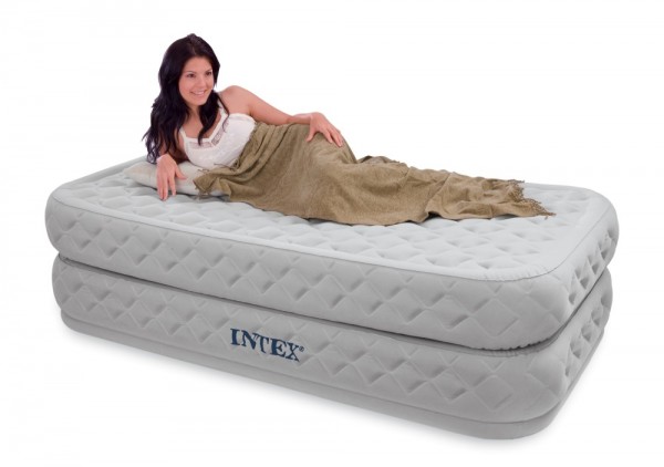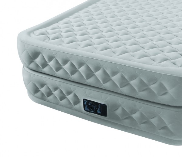 INTEX Luftbett Supreme Air Flow „Supersoft“ 66964 incl. 8 % UST exkl. Versandkosten Lieferzeit: 1-3 Tage sofort lieferbar ! Art.Nr.: 66964 Gewicht: 11.40 kg Eigenschaften Luftbett Supreme Airflow: Qualitätsgeprüftes getestetes Luftbett mit samtweicher beflockter Oberfläche(0.53 mm). 0.38 mm Boden. High End Luftbett mit Super Soft Velvetaire Technologie – Härtegrad der Matratze durch eingebaute Pumpe stufenlos regulierbar – Bett besteht aus 2 Luftkammern. dadurch ist es besonders stabil – komfortable Höhe von 51 cm – Bauweise für besten Liegekomfort und Festigkeit – Oberfläche ist leicht zu reinigen. da wasserabweisend – für Reise oder Lagerung kann die Luft mit der eingebauten Pumpe komplett abgesaugt werden – inkl. Beutel mit Schulterriemen – inkl. elektr. eingebauter Pumpe – sieht optisch wie eine normale Matratze aus. edles Design Technische Details: – Grundgröße 99cm x 191 cm x 51 cm – Doppelkammerkonstruktion – velourbeflocktes Luftbett – Luftpumpe: 230 V – Gewicht: 11.4 kg – Farbe: grau-weiss – inkl. Praktischer Tragetasche