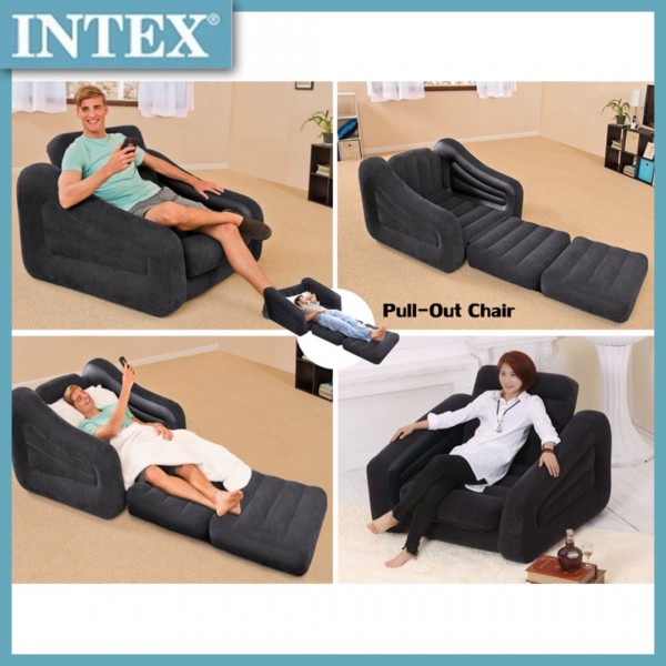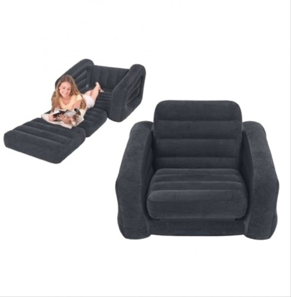 Ein perfekter Sessel mit komfortablen Rücken- und Armlehnen. der sich einfach in ein 109 x 218 x 66 cm großes Einzelbett verwandeln kann. Dies bietet Ihnen der Pull-Out Chair von INTEX. Eine qualitätsgeprüfte 0.52 mm starke. wasserfeste und beflockte Oberseite und Seitenwand sowie ein 0.38 mm starker Vinyl Boden sorgen für eine angenehme und vor allem stabile Verwendung. Ein großes 2-in-1-Ventil mit einer extraweiten Öffnung für ein schnelles Aufblasen und Ablassen der Luft ist serienmäßig integriert.   Produkt Highlights: -Verwendbar als komfortabler Sessel oder Lounge -Kann platzsparend zusammengefaltet werden         INTEX ausziehbarer Sessel Lounge 68565       Sessel – INTEX Sessel Lounge ausziehbar  https://www.youtube.com/watch?v=I1d_74mLlIw   109x218x66cm 68565 Produktbeschreibung: Komortable Sessel-Lounge mit angenehmer. hautverträglicher und sanfter Sitzfläche. Der Sessel ist ausziehbar und deshalb doppelt praktisch. Er ist blitzschnell aufgeblasen und ist schnell verstaut. falls Platz nötig ist. Komfortable Rücken- und Armlehne.