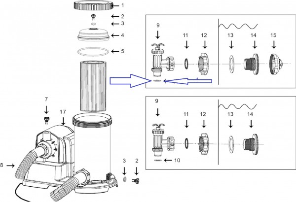 Dichtungs O Ring für den Anschluss beim Apsperrschieber zum Pumpenschlauch. Nur für Schläuche mit durchmesser 38mm geeignet! Liferumfang 1 Stk.   Dichtring für Absperrschieber 10262. 1 Stk   Gummidichtring für den Schlauchanschluss Ohring Absperrschiebers Modell 2013 und neuere!   7.75 CHF         Art.Nr.: 10262   Gewicht: 0.10 kg   Beschreibung: Dichtring (Nr.22) zum Abdichten der 38mm Schläuche vom Pool zur Filterpumpe.
