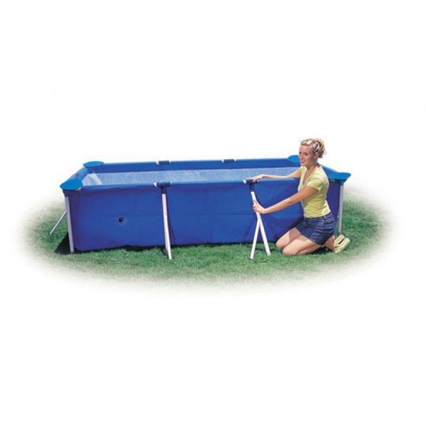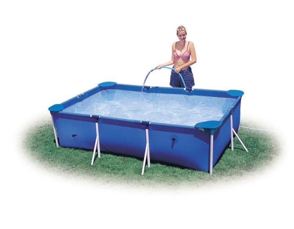 I ntex Metal Frame Zwembad 300 x 200 cm Beliebtester Pool in unserem Sortiment Diesen Frame Pool hatten wir 2011 zum ersten Mal in unser Sortiment aufgenommen. Er war dermaßen populär. dass er binnen drei Wochen komplett ausverkauft war. Auch 2012 rissen uns die Kunden dieses Schwimmbecken förmlich aus den Händen! Deshalb haben wir dieses Jahr unseren Vorrat noch einmal extra aufgestockt. Zwei Faktoren machen den Frame Pool so beliebt: das rechteckige Format und die ausgezeichnete Qualität des Produktes.   Rechteckiger Pool: Optimaler Spaß im Garten Die rechteckigen Frame Pools erfreuen sich immer größerer Beliebtheit. Das liegt daran. dass die Gartenfläche mit einem rechteckigen Pool viel effektiver genutzt wird. Rechteckige Schwimmbecken passen in bedeutend mehr Gärten als runde Becken. Die schmale Seite des Pools spart Platz. während die Längsseite genügend Platz für Badespaß lässt. Bitte beachten Sie beim Kauf Ihres Pools. dass die Stützen der rechteckigen Becken 30 cm nach außen abstehen. Dadurch nimmt der Pool insgesamt 3.60 m x 2.60 m in Anspruch.   Intex Metal Frame Pool: Strapazierfähige. dreifach verstärkte Wände Die Frame Pools von Intex sind für ihre ausgezeichnete Qualität bekannt. Der Intex Metal Frame Pool 300 x 200 bildet hierbei keine Ausnahme. Die Folie aller Intex Frame Pools besteht aus drei Schichten: einer gitterartigen Zwischenschicht aus Polyester und zwei dicken. langlebigen Außenschichten.    Der Rahmen (=Frame) bildet die stabile Basis aller Metal Frame Pools von Intex Nicht nur die Folie des Beckens ist sehr strapazierfähig; auch der Rahmen des Intex Metal Frame Pools ist extra verstärkt. Zum Pool gehört ein stabiler Metallrahmen. in den die Folie eingehängt wird. Der Rahmen besteht aus robusten verzinkten Stahlrohren. die nicht nur stark und stabil. sondern auch rostfrei sind. Mit diesem Intex Frame Pool erwerben Sie ein Schwimmbecken. an dem Sie jahrelang Freude haben werden.   Mit Schlauchanschluss für eine …