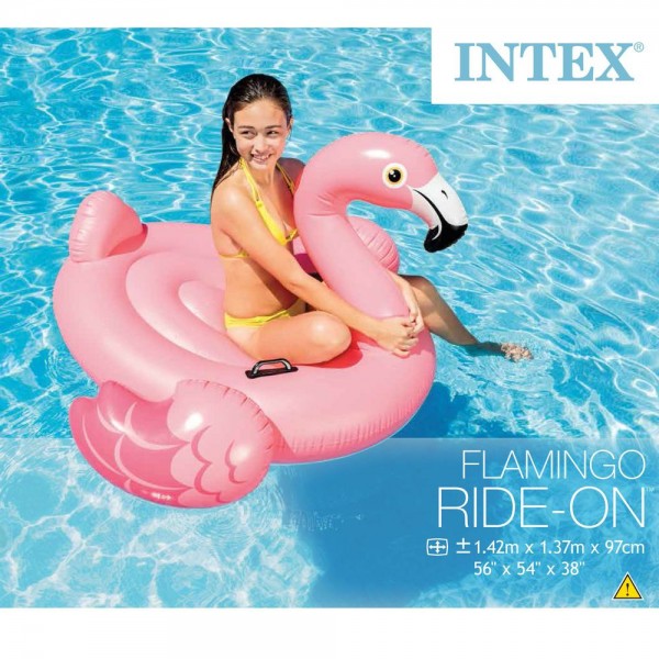 Intex 57558 Schwimmtier „Flamingo“ 1.42m x 1.37m x 0.97m         ARTIKELBESCHREIBUNG Wunderschönes Schwimmtier aus dem Hause des Marktführers Intex mit einer maximalen Gewichtsbelastung von bis 40kg TECHNISCHE DATEN Größe: 1.42m x 1.37m x 0.97m Materialstärke 0.30mm Vinyl Motiv Flamingo Zwei Luftkammern für erhöhte Sicherheit Widerstandsfähige Handgriffe helfen beim Klettern auf die Insel Reperaturflicken inklusive bis 40kg belastbar Sicherheitshinweise   Achtung! Nicht geeignet für Kinder unter 3 Jahren  Achtung! Nur unter Aufsicht von Erwachsenen verwenden  Achtung! Kein Schutz gegen Ertrinken!