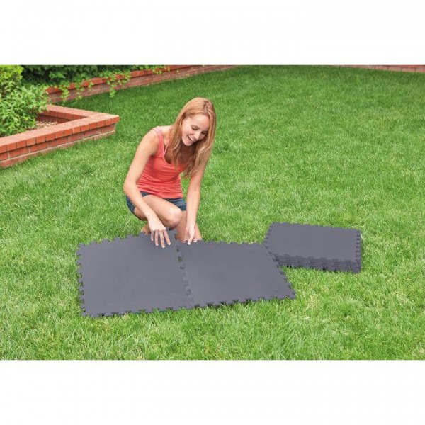Pool-Bodenschutzfliesen 0.4 cm Dick! 8 Stück 50x50x0.4cm von INTEX ideal als Pooluntergrund geeignet robuste Bodenfliesen geeignet für alle Easy Set und Frame Pools und Spa Stecksystem kann beliebig erweitert werden (Puzzle-System) eine Packung enthält 8 Fliesen ergibt ca.1.90 m² Farbe:grau Material: Polyethylenschaum Maße je Fliese (L x B x H): 50 x 50 x 1 cm Produktbeschreibung: Die praktischen Pool Bodenschutz Fliesen sind ein wichtiges und nützliches Zubehör für alle Pools und Planschbecken Mit den Bodenplatten schützen Sie den Untergrund Ihres Beckens Die Fliesen verhindern. dass kleine Fremdkörper und kleine Unebenheiten. Risse oder Löcher im Poolunterboden verursachen Die Poolplatten sind aber nicht nur ein Unterbodenschutz. sie sorgen auch für einen angenehm weichen Untergrund So wird das Sitzen und Stehen im Spa & Pool angenehmer Die robusten Pool Bodenschutz Fliesen sind außerdem eine zusätzliche Isolation für Ihren hochwertigen Pool Die Bodenschutzfliesen sind zudem universell einsetzbar. wie z.B. beim Camping. im Garten oder im Kinderzimmer. dienen als Polsterung und sorgen für eine weiche Fläche