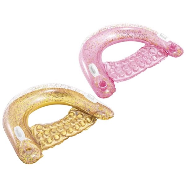 Intex Glitter Sit ‚N Float Stuhl Der Intex Glitzer Sit ‚N Float ist ein schwebender Sitz mit 2 Griffen. damit Sie sich einfach hinsetzen können. Auch nützlich für das Meer. wenn Wellen kommen. Können sie sich halten. Der Stuhl sitzt bequem und verfügt sogar über zwei Becherhalter. um es ihn noch bequemer zu machen. Der aufblasbare Stuhl ist aus hochwertigem 0.25 mm PVC gefertigt und hat ein einzigartiges Glitzerdesign. Dank der verschiedenen Luftkammern ist der Stuhl sehr stabil.   Dieser Stuhl ist in 2 Farben erhältlich: Rosa und Gold. Sie erhalten nach dem Zufallsprinzip eine dieser Farben. Es ist leider nicht möglich. vorher zu bestimmen. welche Farbe Sie erhalten. Spezifikationen Weitere Informationen Artikelnummer 019071745 Marke Intex Lieferantencode 56831EU EAN-code 6941057418100 Anzahl Kartons 1 Kartongrößen Karton 1 23 cm x 9 cm x 20 cm Gewicht Karton 1 1.1 kg