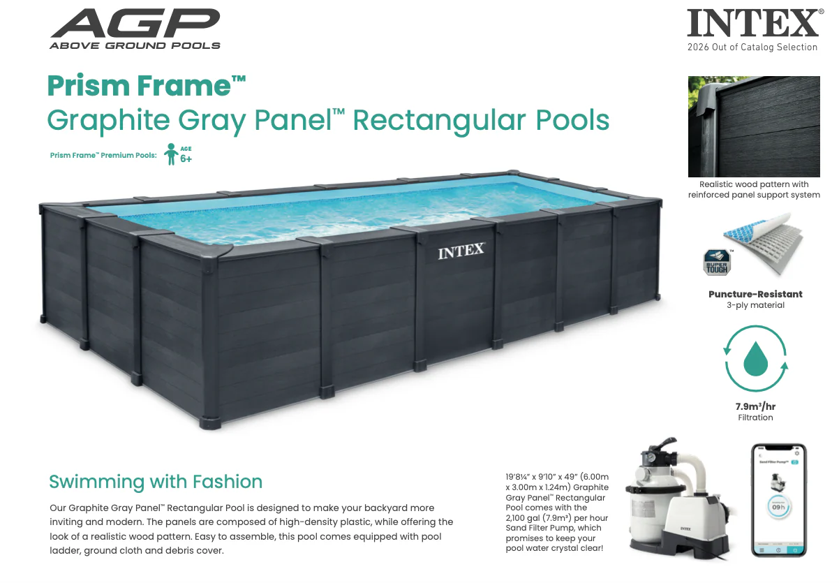 Machen Sie Ihren Sommer unvergesslich mit dem AGP Prism Frame™ Graphite Gray Panel™ Pool: Er vereint die Funktionalität eines hochwertigen Pools mit der Eleganz eines raffinierten Designs.