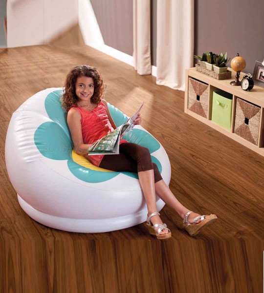 SESSEL MIT BLUME 102x99x64 cm. erhältlich in zwei Türkis und Fuchsia Farben aus Vinyl auf allen Seiten. leicht waschbar und faltbar.   Der Preis bezieht sich auf ein einzelnes Stück. Farbe Türkis.