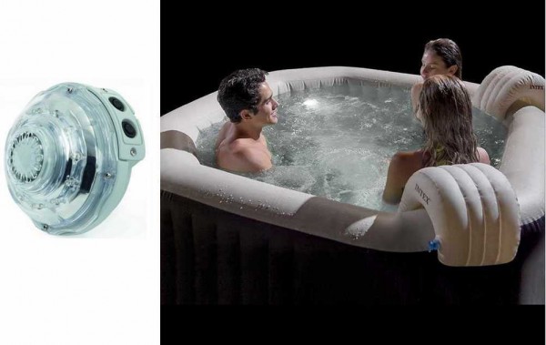 Eine perfekte und angenehme Beleuchtung. während Sie relaxen. erhalten Sie mit der neuen LED-Beleuchtung für Pure Spa Jet und Kombi Modelle. Diese ist ganz einfach auf die Jetdüse aufzuschrauben. Anhand zwei verschiedener Beleuchtungsmodi können Sie nach belieben Ihr gewünschtes Ambiente schaffen. Eine externe Stromquelle wird nicht benötigt. Die eingebauten LED`s strahlen. sobald Sie die Jetpumpe Ihres Whirlpools einschalten (keine Batterien notwendig). Technische Daten leuchtet in 5 verschiedenen Farben zwei verschiedene Beleuchtungsmodi Modi 1: Farbwechsel (grün. hellblau. dunkelblau. violett) Modi 2: leuchtet in der gewählten Farbe (weiß. grün. hellblau. dunkelblau. violett) Leistung 0.6 Watt Passend für alle Pure Spa Jet und Kombi Modelle Lieferumfang 28504 Intex LED Beleuchtung PureSpa Jet & Kombi Modelle Lieferung besteht aus 1 Paket Intex Mehrfarbiges LED-Licht mit Wasserkraft für Jet & Bubble Deluxe Einfache Installation: Schieben Sie einfach das Spa-Licht über die Spa-Jet-Steckdose. Zwei Beleuchtungsmodi: Einfarben- oder Farbwechselmodus. Mehrfarbiges LED-Licht mit Wasserkraft für Jet und Bubble Deluxe Spa. Erhellen Sie Ihr Spa mit diesem mehrfarbigen LED-Licht mit eingebautem Wasserkraftgenerator. Keine externe Stromquelle benötigt! Beleuchtet bis zu 5 verschiedene Farben: weiß. grün. knickente. blau und lila. Befestigt an der Spa-Jet-Port (Wasser fließt über 600gph). Kompatibel mit diesen PureSpa Modellen: 28453/28455 Jet & Bubble Deluxe. 28421/2843Massage.