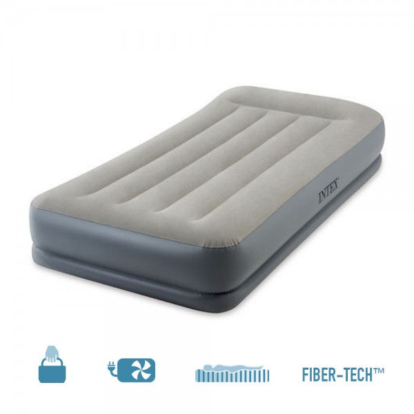 Luftmatratze Einzelbett Aufblasbar Intex 64116 mit integrierter Pumpe Marke Intex Verfügbarkeit INTEX Luftmatratze Intex 64116 einzelbett ist mit dem innovativen Fiber-Tech material realisiert. dass in der Lage ist Komfort und Relax zu Maximisieren. so dass sie Ergonomisch wird und das Gewicht gleichmaßig übertragen wird. Intex 64116 einzelbett Luftmatratze ist die neuigkeit dieses Jahres. realisiert mit hochwertigen Materialien. Robust. Dauerhaft. sie ist perfekt für einen Innenraum-Nutz sowie einen Außenbereich-Nutz. das Produkt ist wasserresistent und ist mit einer sanften Öberfläche ausgestattet. Die aufblasbare Luftmatratze Intex 64116 hat außerdem auch eine integrierte Pumpe die die Luftmatratze in wenigen Minuten aufbläßt. perfekt für wer Sie im camping oder im Ferienhaus benutzt. Die Struktur in multischichtigen Vinyl sichert mehr Robustheit und Langlebigkeit als die traditionellen Luftmatratzen. Intex 64116 Luftmatratze zum besten Preis im Internet an um den Kunden ein hochwertiges Produkt zu garantieren. Technische Daten Luftmatratze Intex 64116 : Marke: Intex Maße: 191x99x33 cm Höchstlast: 140 kg Gewicht: 6 kg Integrierte aufblas-Pumpe mit der Möglichkeit dies auch manuell aufzublasen Fiber-Tech Struktur mit tausenden Fibern um den Komfort zu Maximisieren und das Gewicht gleichmaßig zu übertragen Integriertes Kissen Sanfte Oberfläche im oberen Bereich für ein großen Relax Vinyl-Struktur robust und einfach zu reinigen