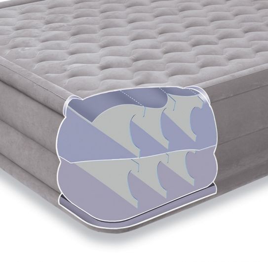 Einzigartig ist bei diesem Bett. die eingearbeitete   Schaumstoffschicht. die sich wie eine Latexmatratze an Ihren Körper anpasst und ihn stabilisiert. Die Liegefläche besteht aus einem kuscheligen velourbefolckten Obermaterial. inkl. 230V integrierter Pumpe. nur 4 Minuten Aufpumpzeit inkl. praktischer Tragetasche Maße: 99cm x 152cm x 48 cm