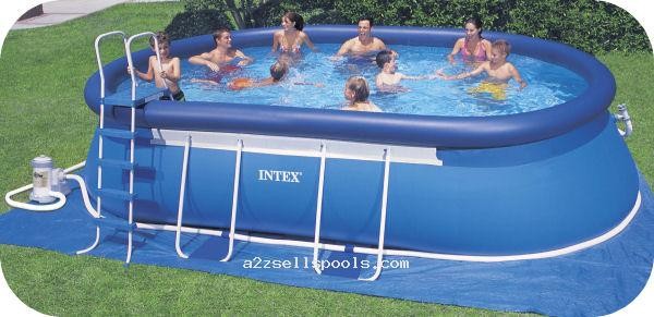 INTEX Swimming Pool Oval-Frame 305x549x107 cm 54432 (mit Verbindungsschläuchen) inkl. 6 Ventil Sandfilter. Leiter. Abdeckplane. Bodenschutzplane. Komplettset Art.Nr.: 54432 Gewicht: 86.70 kg Einfachster Aufbau: Den leeren Pool ausbreiten und mit einem Gartenschlauch mit Wasser befüllen. Der Pool stellt sich mit zunehmendem Wasserstand selbstständig auf! – kinderleicht. Technische Daten: Wasser Kapazität: 11600 Liter / Maße: 549 cm Länge. 305cm Breite. Höhe: 107cm Sicherheit: TÜV / GS geprüft Lieferumfang: – Intex Oval Frame Pool – Sandfilter 6 Ventiltechnik 4000-5000 Liter / Std – Schlauchverbindungen – Leiter – Abdeckplane – Bodenplane Zu diesem Pool empfehlen wir folgende Zubehör Teile: Fibalon Fussbad Poolbar mit Handtuchhalter höhenverstelbahr LED Magnetlicht LED Hydroelecktrisches Licht für 38 mm Anschlüsse Metallframe deluxe Skimmer Sauerstoffdüse LED Sprayer Led Hydrothermo Licht für 32 mm Anschlüsse Vacumcleaner Solar Led Insel mit 16 Farben Led Unterwaser Strahler 16 Farben & Fernbedienung
