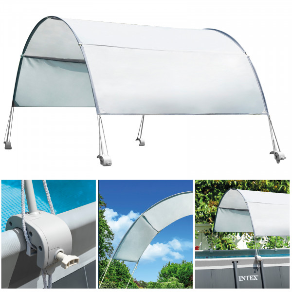 Mit diesem Sonnendach ist man gegen zu intensive Sonnenbestrahlung bestens geschützt. Die halbkuppelartige Form spendet wohltuhenden Schatten über einen großen Poolbereich. Vier Montagestellen gewährleisten eine sichere und einfache Montage. Bei Nichtgebrauch ist das Sonnendach auch wieder schnell und einfach demontiert.