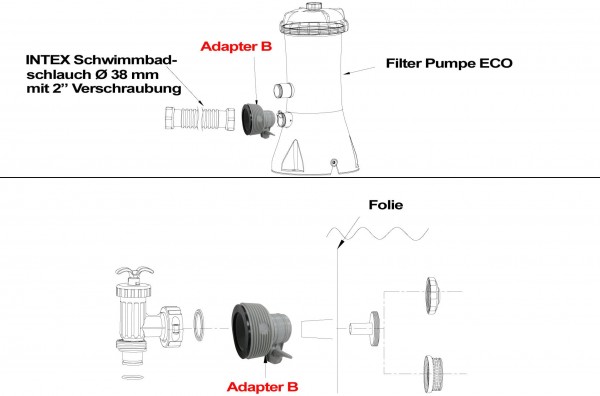 INTEX Adabter von 38mm auf 32mm Anschlüsse. wie Elektroheizer. Filterpumpen. Anschlussets von kleineren Pools bis 457cm ist universell einsetzbar. Lieferumfang 1. Stk. Mit Kunstoffpride zum festziehen des Adapters.