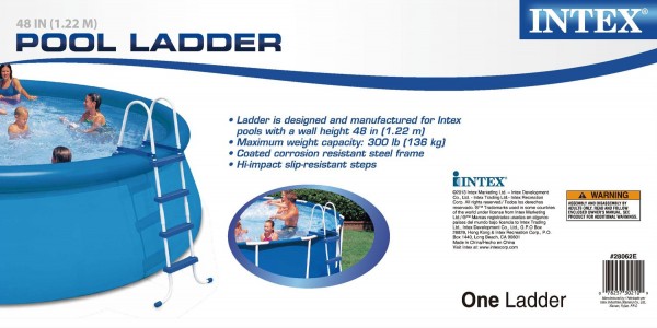 Intex Pool Leiter 122cm INTEX 58974 Pool Leiter 122 cm Leiter Easy Set & Metall Frame. sorgt für einen sicheren Ein- und Ausstieg Für Intex Easy-Set Quick-Up und Metall Frame Pools auch für Pools anderer Hersteller geeignet Produktdaten:  – sehr gut verarbeitet. speziell auch für Kinder geeignet – Gewichtsbelastung 300 Kg pro Stufe – inklusive Bedienungsanleitung Zusammenfassung: – 100% Originalware – Original verpackt – TOP-Ware zum kleinem Preis – Ware TÜV geprüft und mit CE-Kennzeichnung – volle 12 Monate Herstellergarantie
