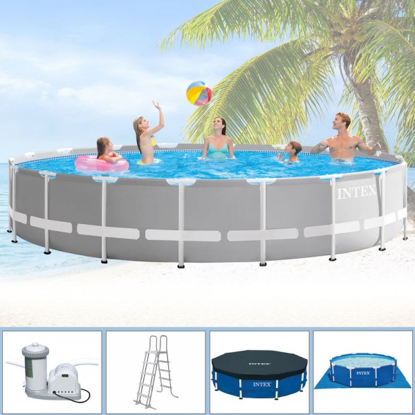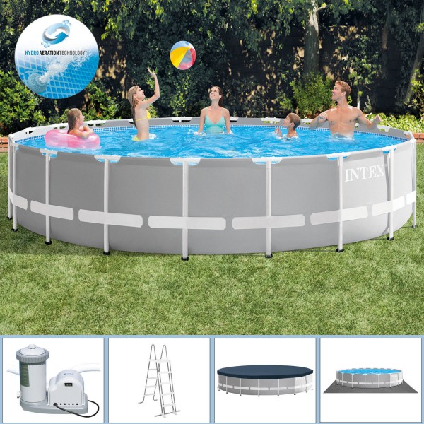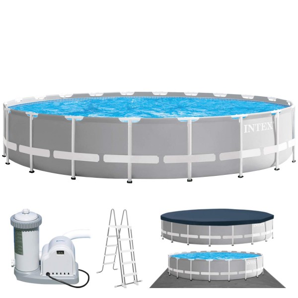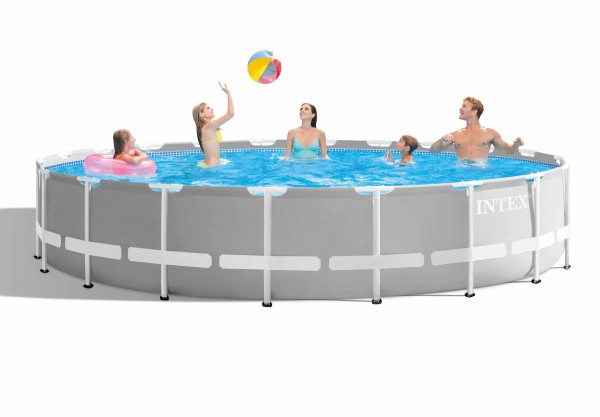 INTEX ARTIKELBESCHREIBUNG Die Premium Line von INTEX. Genießen Sie stundenlangen Spass mit dieser Serie. Einfach zu montieren. robust und langlebig. Die pulverbeschichtete Konstruktion gewährleistet eine hohe Standfestigkeit. Erfrischung. Spaß und gute Laune für die ganze Familie sind bei diesem Ø 610 x 132 cm großen Pool garantiert. Der Wasserinhalt beträgt bei einer Befüllung von 90 % 32.695 l. Eine sehr gut dimensionierte Folienstärke sorgt für eine hohe Stabilität und Sicherheit. Für eine optimale Filterung sorgt die im Lieferumfang befindliche Kartuschenfilteranlage OPTIMO 636G. 5.678 l/h. GS mit INTEX Wasserbelebungstechnologie. Diese verfügt nicht nur über ein sehr gutes Filterergebnis. sondern auch über alle benötigten Anschlüsse. Eine Abdeckplane sowie eine Bodenschutzplane dienen zum zusätzlichen Schutz und reduzieren die Verschmutzung im Pool. Die mitgelieferte Sicherheitsleiter bietet Ihnen nicht nur eine komfortable Ein- und Ausstiegsmöglichkeit sondern sichert mit den entfernbaren Stufen den unerlaubten Zugang zum Pool. Wichtige Hinweise: Dieser Pooltyp ist nicht für den Erdeinbau geeignet. Am einfachsten ist die Montage zu zweit. Die ungefähre Montagezeit beträgt je nach Ausstattungsvariante und Größe ab 30 Minuten (ohne Vorbereitungsarbeiten für Unterbau bzw. Befüllung). Wasserdichtheit/Klasse: W0. EN 16582-1 / EN 16582-3. Voraussetzung für die Poolmontage ist ein dementsprechend vorbereiteter Aufbauplatz. Dieser muss absolut flach und eben sein. Der Untergrund muss so stabil sein. dass er das Gewicht eines gefüllten Pools unabhängig von der Witterung aushält. Zusätzlich muss die Möglichkeit geschaffen werden. dass auslaufendes Poolwasser problemlos ablaufen kann. ohne dabei Schaden anzurichten. Achtung! Bei Verwendung eines Schwimmbades wird die Einhaltung der in der Bedienungs- und Wartungsanleitung beschriebenen Sicherheitshinweise vorausgesetzt. Um Ertrinken und andere schwere Verletzungen zu vermei…
