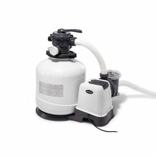 INTEX Sandfilteranlagen sind gerade für den Dauerbetrieb und größere Pools sehr gut geeignet. Die Betriebskosten sind gegenüber herkömmlichen Filterpumpen mit Kartuschenfilter wesentlich geringer. da des Glasfiltermedium oder der Sand nur ca. alle 3-5 Jahre gewechselt werden muss. Die Filterleistung ist höher. Bei zunehmender Verschmutzung des Glasfiltermediums oder des Quarzsandes wird dieser einfach durch Rückspülen gereinigt und kann weiter verwendet werden. Der Betrieb dieser Sandfilteranlage läuft nahezu wartungsfrei. Funktionen des 6-Wege Ventils – Filtern. Normales Filtern und regelmäßiges Absaugen des Pools – Rückspülen. umgekehrter Wasserdurchfluss zur Reinigung – Spülung. für die Erstinbetriebnahme und zur Ebnung des Sandes. Lieferumfang: 1x Sandfilter ohne gelistete oder Fotodokumentarisch dargestellte Anbauteile! Benötigt werden 38 Liter Filtermaterial vorzugsweise 2 Säcke Fibalon