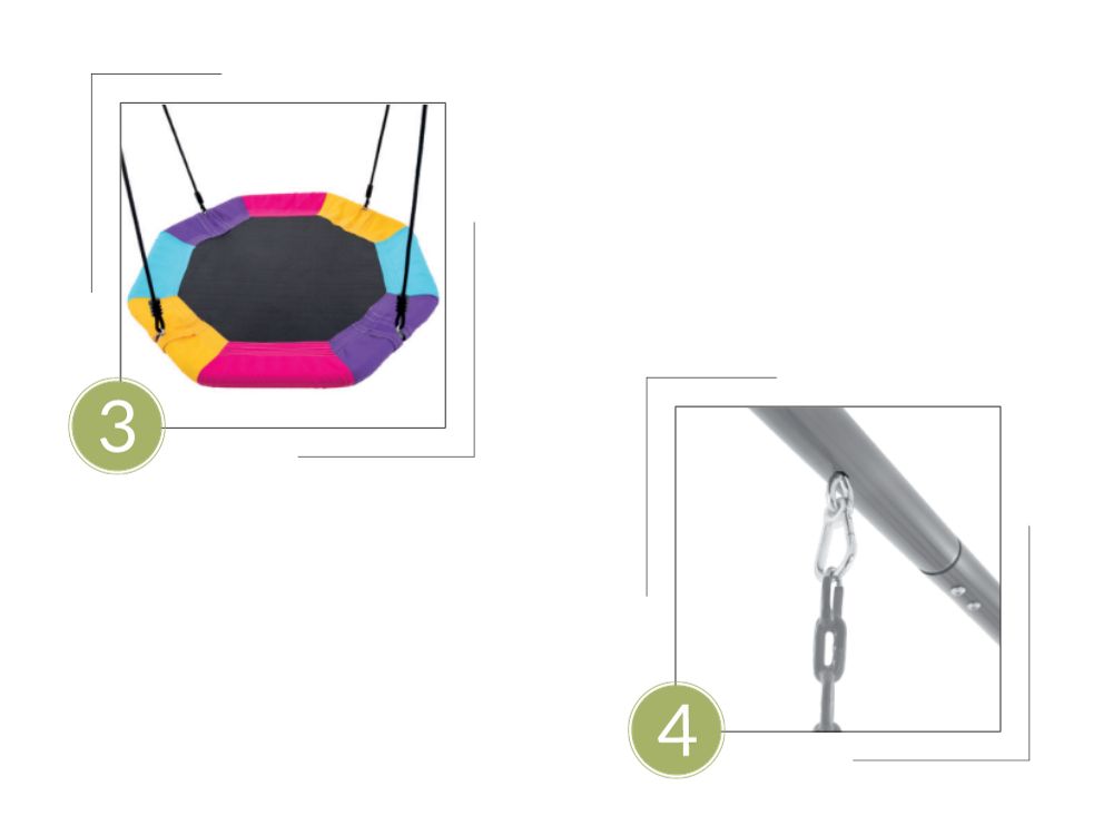 Ausgestattet mit montagefreundlichen Fußstützen ausgestattet, die Ihnen eine mühelose Installation ermöglichen. Innerhalb kürzester Zeit steht Ihre Schaukel bereit, um unvergessliche Momente zu schaffen.