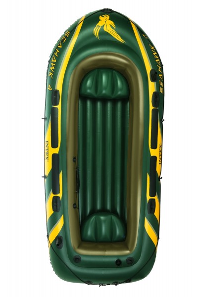 Intex 68351 Schlauchboot Set Seahawk 4 Top auf Seen / Flüssen und dem Meer Intex Schlauchboot Set Seahawk 4 68351 für 4-5 Personen (Selbstverständlich Salzwasser-geeignet) Maße: 351 x 145 x 48 cm Beschreibung: – 3 Kammersystem mit zusätzlicher Kammer für Notfälle – Rundumleine – Haltegriffe – Angelrutenhalter – meerwasserbeständige Bootshaut – Halterung für Motorbefestigung – Reparaturset – GS- geprüft für ihre Sicherheit Im Lieferumfang – Schlauchboot – Reparaturset – Nutzlast: ca.400 kg Tragfähigkeit: 2 Erwachsene – kann mit einem Außenbordmotor bis max. 1.1 KW betrieben werden – Optional erhältlich: Außenborderbefestigung Optional erhältlich: 1.5 Ps INTEX Elektromotor Intex Schlauchboot Seahawk 4 68351 Nicht im Liferumfang enthalten: