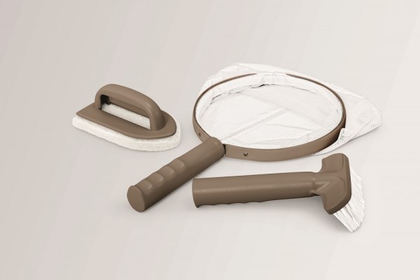 Reinigungsset für Whrilpool Intex mit Bürste. feinem Kescher. engmaschigem Netz für feine schwimmverschmutzungen. Die Bürste ist besonders wirkasm und scho nend für den Spaa einsatzt.