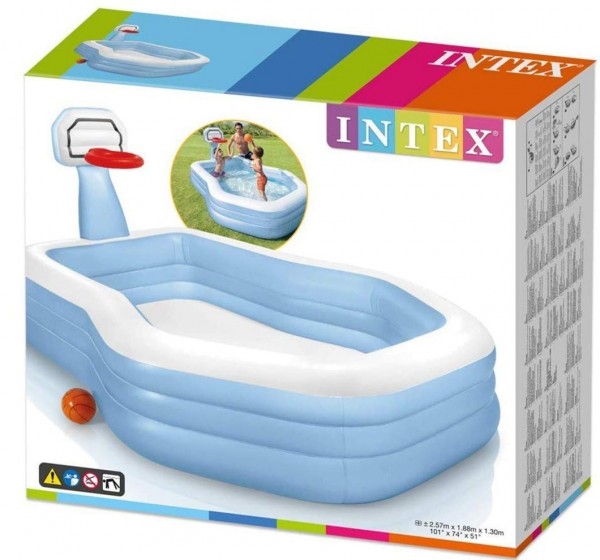 Intex 57165 Aufblasbare Familienpool SHOOTIN ist ein fantastisches aufblasbares Schwimmbad für Kinder. Alle Materialien. die für die Herstellung des Pools verwendet werden. sind robust und dauerhaft. um sicherzustellen. dass Ihr Kind mit einem hochwertigen. zuverlässigen und sicheren Produkt spielen kann.   Technische Daten: Maße: 257 x 188 x 130 cm Material: Vinyl Farbe: mehrfarbig Wasserkapazität: 682  l inkl. Reparaturflicken
