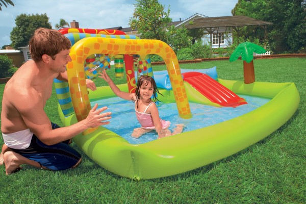 Jungle Playcenter mit Rutsche und Palme Intex 57467 Intex Jungle Playcenter 57467. viele Spielmöglichkeiten Maße: 305 x 198 x 135 cm Jungle Playcenter mit Rutsche und Palme Intex 57467 Jungle Playcenter mit Rutsche und Palme Intex 57467 Jungle Playcenter mit Rutsche und Palme Intex 57467 Art.Nr.: 57467 Gewicht: 7.10 kg Beschreibung Intex Jungle Playcenter: Wasserspielplatz im Jungle Pool. für abwechslungsreichen Spielspaß. Details im Überblick: + ein Pool mit Wasserrad und Palme + ein Pool mit Wasserrutsche und Wasserfall + einfach Gartenschlauch anstecken. der Wasserfall plätschert und das Wasserrad fängt an sich zu drehen + Planschbecken mit Überlauf Ablauflöcher ausgestattet. dies ermöglicht einen maximalen Wasserstand beider Poolbereiche + Pool 1: 20cm W