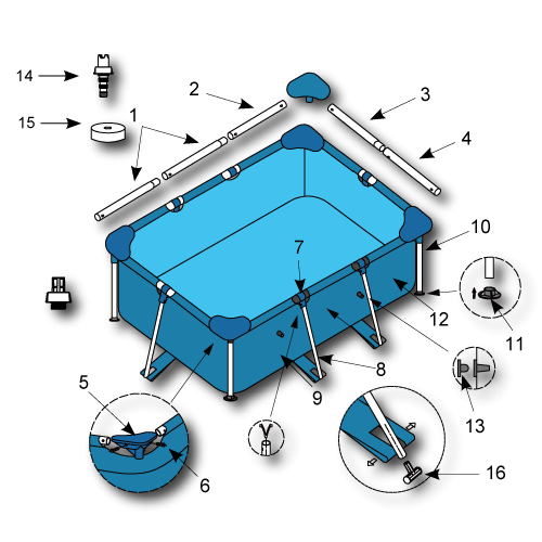 INTEX Stützen fixierung für alle Familenframepools!    Abildung Teile nr: 16