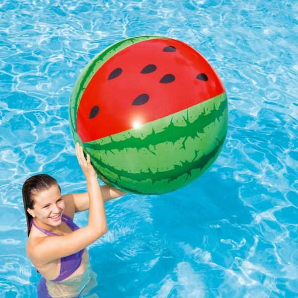 INTEX Watermelone Strandball „Wassermelone“ 58071NP     INTEX Watermelone Strandball „Wassermelone“ 58071NP      11.75 HF Empfohlener Verkaufspreis: Hersteller:   INTEX Modell:   58071NP Garantie:   2 Jahre Gewicht:   0.60 kg     Beschreibung Fröhlicher Stranball in den Farben der Melone. Mit diesem großen Ball werden Sie gute Laune bestimmt haben. Maße: 107 cm im Durchmesser Material: Vinyl 0.23 mm Inklusive Reparatur Flicken.  Abbildung kann vom Original abweichen.