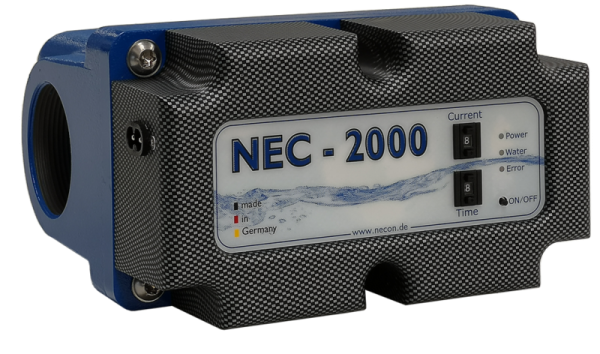 NEC-2000 Neueste version der Chemiefreien asserdesinfikation 2019 NEC-2000 ist konzipiert als Kleinanlage mit kompakten Abmassen für Durchflüsse bis zu 3 Kubikmeter pro Stunde bzw. zur Aufbereitung von Schwimmbecken oder Versorgungstanks von 8 bis 80 Kubikmeter Wasservolumen. Wie beim grösseren Schwestermodell NEC-4000 sind wesentliche Ausstattungsmerkmale der NEC-2000 Anlage… präzise Steuerung der Elektroden-Leistung hohe Ausgangsleistung auf die Elektrode ausgelegt für Wasserdrücke bis 16 Bar WRAS-zertifizierte (d.h. Trinkwasser-geeignete) Beschichtung der Behandlungszelle Technische Daten Spannungsversorgung: integriertes Weitbereichsnetzteil: 85-264 VAC. Ausgang max. 24 V Gleichspannung Frequenzbereich: 50/60 Hertz Adaption an Spannungsquelle über mitgeliefertes Euro-Netzkabel mit IEC-60320-C7 („Kleingerätestecker“) an integrierter Buchse IEC-60320-C8 Leistungsaufnahme: max. 36 Watt je nach eingestellter Elektroden-Leistung und Leitfähigkeit des Wassers Bedienungselemente: BCD-Schalter für Elektroden-Leistung in 0.16 A-Schritten (max. 1.5 A) BCD-Schalter für Elektroden-Laufzeit (0.5 h bis 4 Stunden; Dauerlauf) ON/OFF-Taster für Laufzeit-Start und -Abbruch; Zeitschaltuhr empfohlen (nicht mitgeliefert) Schutzklasse: IP54 (Spritzwasserschutz) Abmessungen: 200 x 215 x 115 mm Leergewicht: 4.2 kg Elektrodengewicht : 2.3 kg (bei 5 Platten a 5 mm) Anschluss-Gewinde: 2x 2“ IG Wir können Ihnen das Gerät auf alle Pools und Tanks anschliesen! Fragen Sie einfach nach dieser Möglichkeit. Glasklahres. Einfaches und unkompliziertes Chmeifreies Trinkwasser im Pool zu geniessen. Besonders für Allergiker aler Art geeignet.