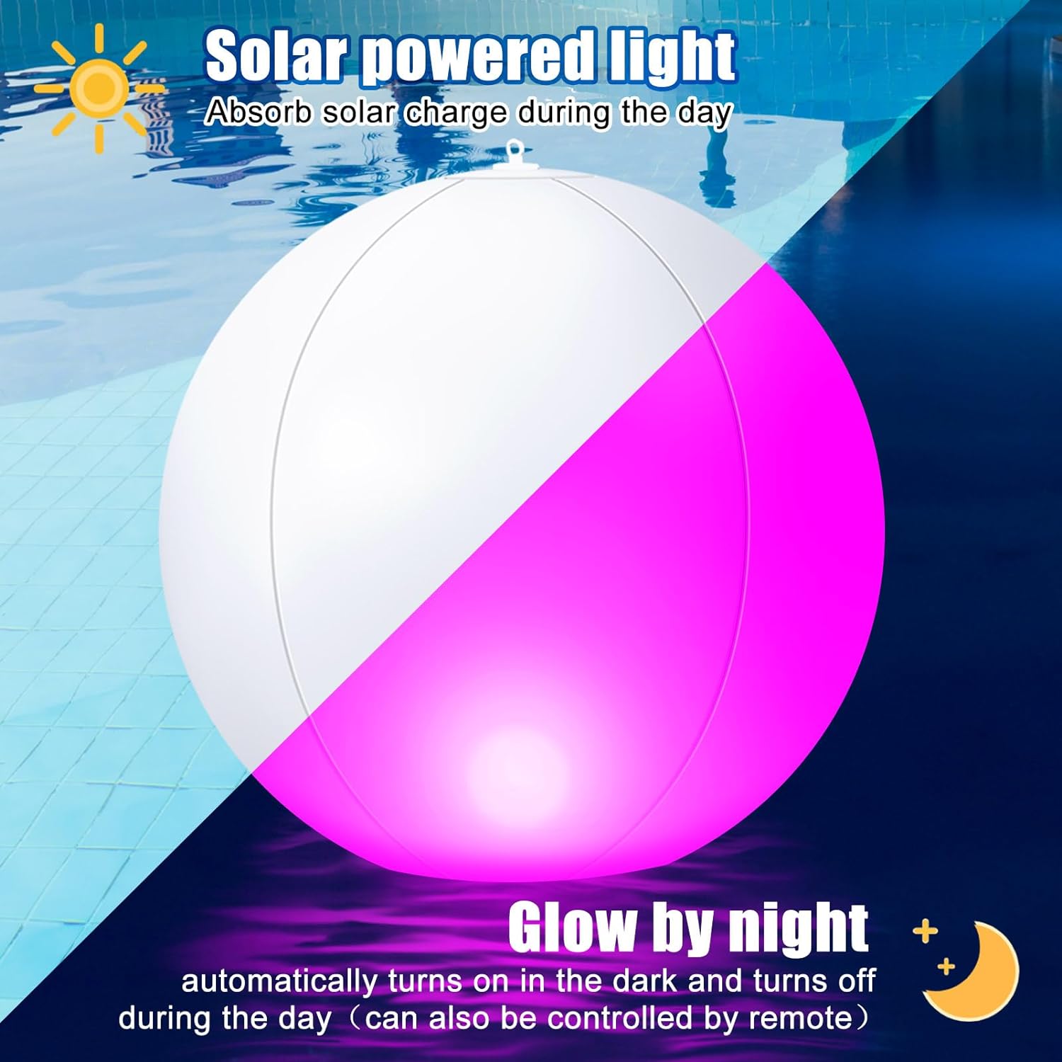 POOLTOOL aufblasbares Led Sphere Licht! 1 Stück großes Pool-Solar-Lichte, 16 Farbwechsel-LED-Solarkugeln, LED-Solarkugeln, aufblasbar, wasserdicht, Pool Ball, Schwimmer oder zum Aufhängen für Schwimmbad, Garten, Hinterhof, Teich, Party etz.