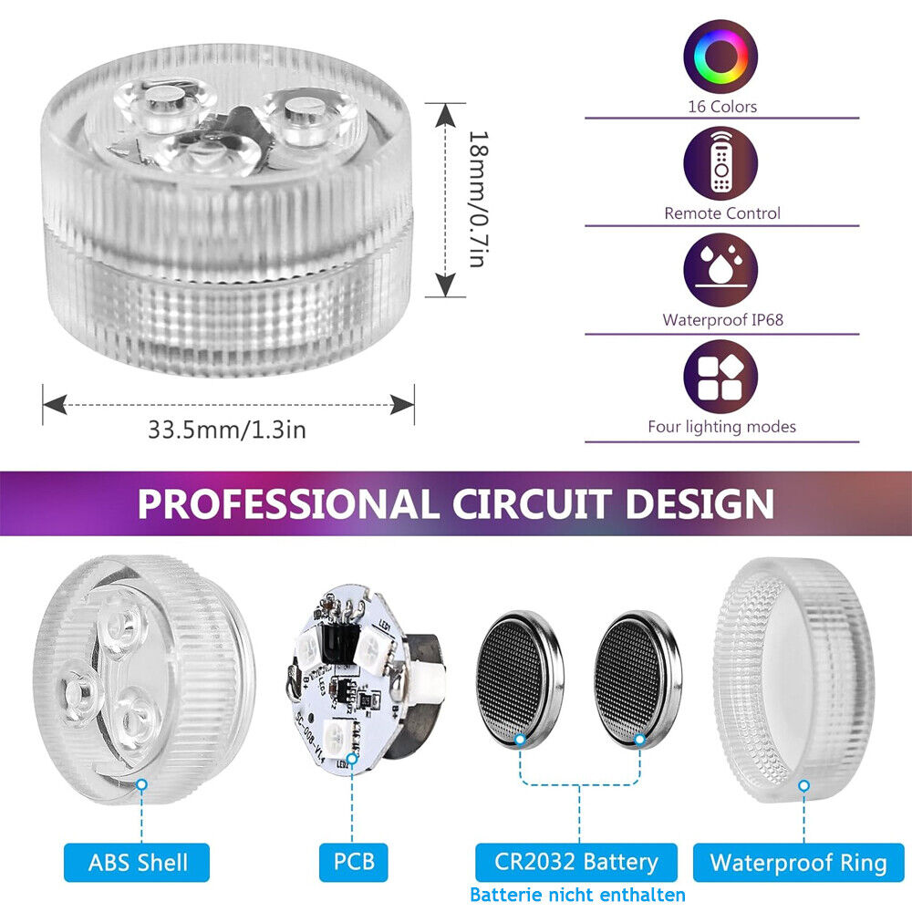 Produktdetails zu LED Poolbeleuchtung Unterwasserlicht mit Batterien Licht und Fernbedienung sind schon im Produkt enthalten!