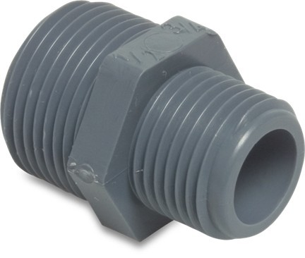 Doppelnippel. reduziert   Reduziernippel PP 1/2″ x 3/8″ Außengewinde 10bar Grau     Anschluss:  Außengewinde Werkstoff:  PP Farbe:  Grau Maß:  1/2″ x 3/8″ Arbeitsdruck:  10 bar