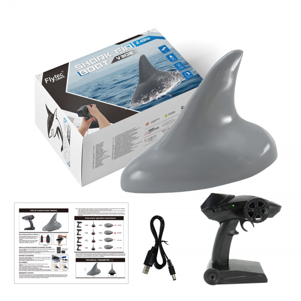 RC BOOT – HAIFISCHFLOSSE Erschrecken Sie Ihre Freunde mit der ferngesteuerten Haifischflosse. Die hohe Form und Grösse der Haifischflosse imitiert die echten Haifischflossen und dank dem ruhigen Betrieb. kann man relativ lautlos im Wasser fahren. Ganzes Boot dicht verschlossen: Dieses Boot verwendet eine Vielzahl von Versiegelungsmethoden. um eine hervorragende wasserdichte Leistung zu erzielen. Es kann normal funktionieren. selbst wenn es ins Wasser geworfen wird. Doppelmotoren bieten ausreichend Leistung für einen schnellen Vor- und Rücklauf sowie eine flexible Lenkung wie Links- und Rechtskurven. Der Fernbedienungsabstand beträgt bis zu 50 m. und die störungsfreie 2.4-GHz-Fernbedienungsfrequenz ermöglicht es vielen Booten. sie störungsfrei zu verwenden. Wenn die Leistung zu niedrig ist. sinkt die Geschwindigkeit des Bootes. dank dem eingebauten Niederspannungsschutz. automatisch um 40%. was die Benutzer daran erinnert. das Boot zurückzurufen. RC BOOT: Artikelname: Simulation Shark Fin Boat Artikel-Nr.: V302 Hauptmaterial: Harz + Kunststoff Farbe schwarz Ladezeit: 2-3h Nutzungsdauer: 15 Minuten Geschwindigkeit: 15 km / h Bootsbatteriekapazität: 3.7 V 500 mAh Lithiumbatterie Artikelgröße: 32 * 14.5 * 22.5 cm Artikelgewicht: 1020g Alter: 14+ FERNBEDIENUNG Kontrollentfernung: 50m Frequenz der Fernbedienung: 2.4 GHz Controller-Batterie: 4 * 1.5 V AA-Batterie (nicht im Lieferumfang enthalten)