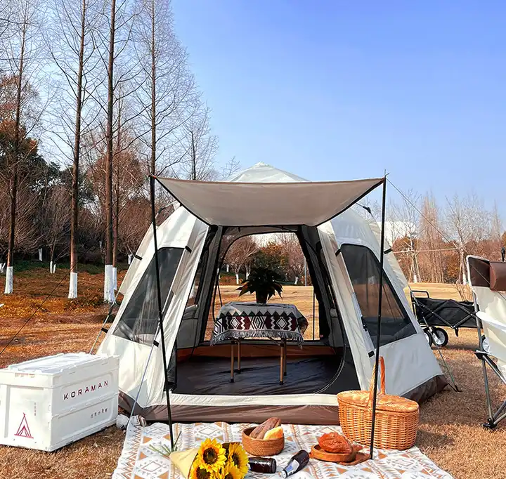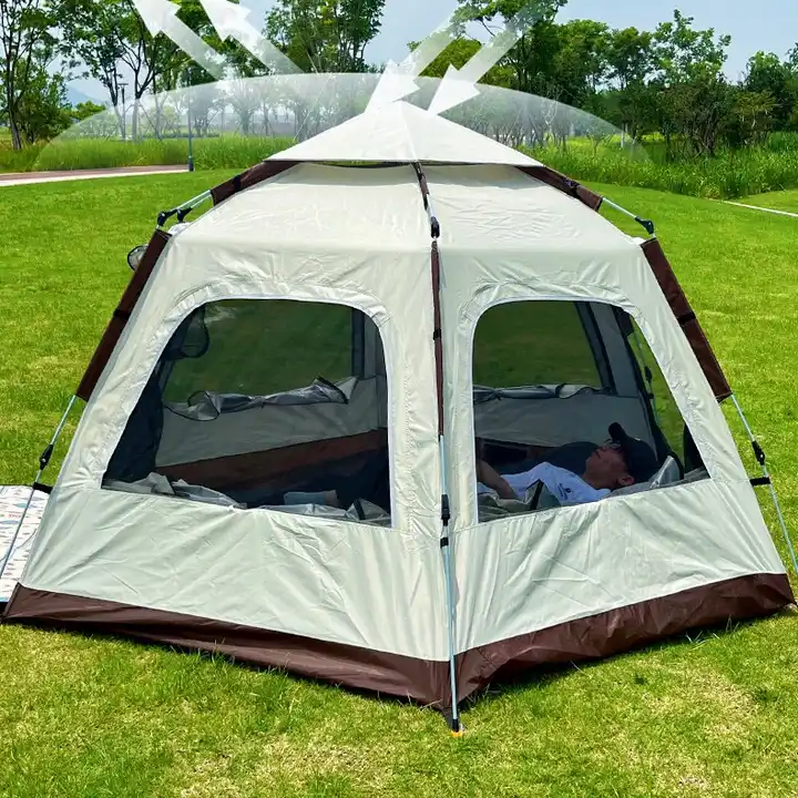 POOLTOOL Outdoor Hexagon 5-8 Personen 260x240x160 cm UV-Schutz Wasserdichtes wind dichtes automatisches Camping Zelt für X Anwendungen Top