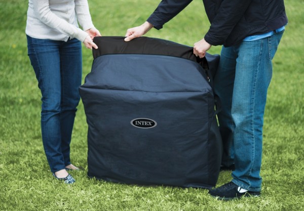 Im Lieferumfang des Intex PureSpa Jet & Bubble Deluxe enthalten sind eine Reihe wichtiger Zubehörteile. Zur Verhinderung eines Wärmeverlusts werden standardmäßig eine isolierende Abdeckung und eine Bodenplane mitgeliefert. Darüber hinaus eine praktische Aufbewahrungstasche, ein Filterpumpe und 3 Filterkartuschen (Typ S1) für die Filterpumpe. Sie enthalten 2 Kissen bei der Intex PureSpa Jet & Bubble Deluxe für extra Komfort. Die Filterpumpe hat eine Kapazität von 1741 Litern pro Stunde. Binnen 30 bis 45 Minuten ist das Wasser gefiltert. Über das Bedienpanel können Sie den Filter leicht ein- und ausschalten.