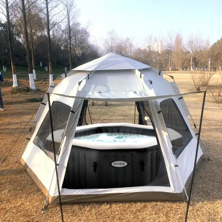 Für den Einsatz im Winter und in der Übergangszeit empfehlen wir unser Spa-Zelt Delüxe: